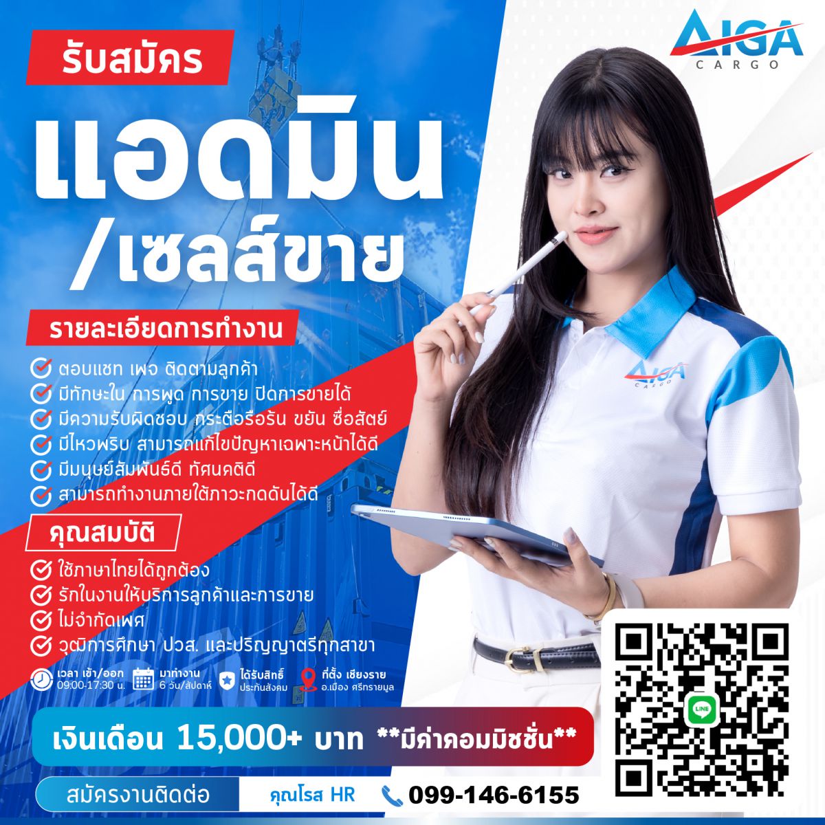 - เงินเดือนเริ่มต้น 15,000 บาท